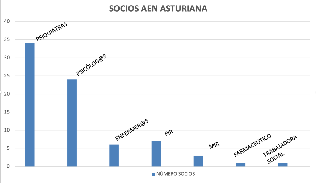 ¿Quiénes Somos? La Asociación Asturiana de Salud Mental (AEN) cuenta entre sus socios con 34 psiquiatras, 24 psicólog@s, 6 enfermer@s, 3 Médicos Internos Residentes, 7 Psicólogos Internos Residentes), 1 farmaceútico y 1 trabajadora social. Comparte esto: Click to share on X (Se abre en una ventana nueva) X Haz clic para compartir en Facebook (Se abre en una ventana nueva) Facebook Haz clic para compartir en Pinterest (Se abre en una ventana nueva) Pinterest Haz clic para compartir en LinkedIn (Se abre en una ventana nueva) LinkedIn Haz clic para compartir en Tumblr (Se abre en una ventana nueva) Tumblr